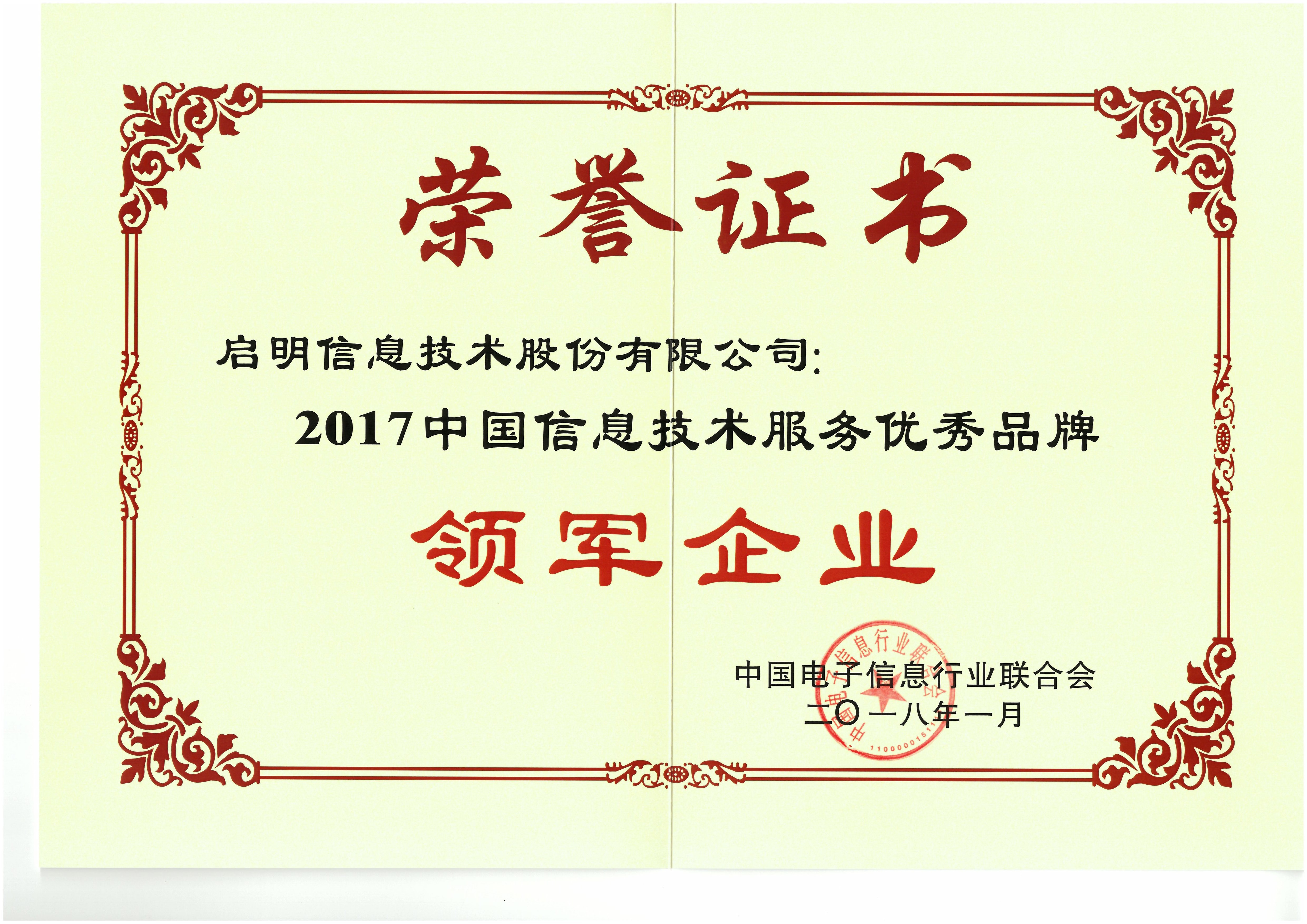 中国信息技术服务优秀品牌领军企业-2017